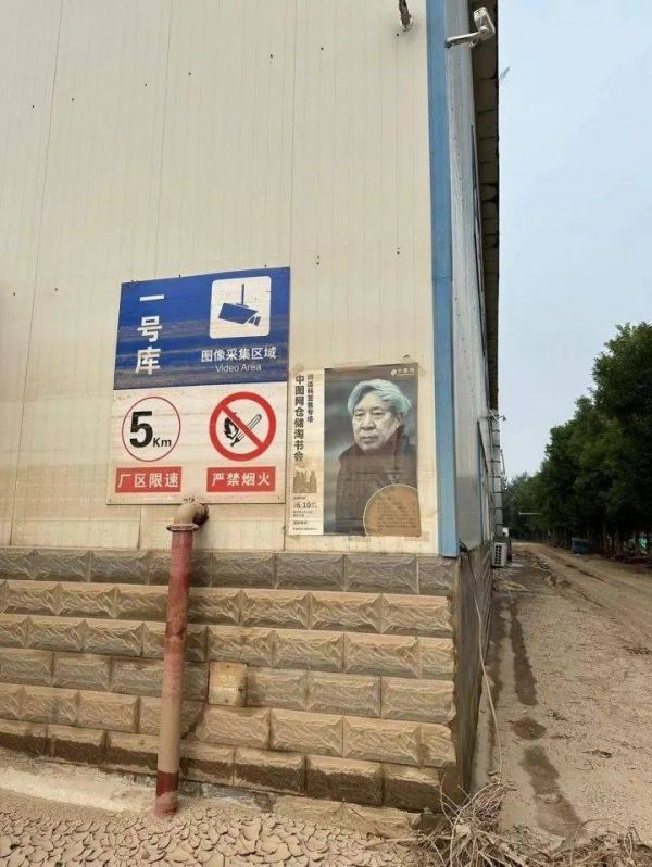 两个月前,中图网在仓储中心举办知名作家阎连科签售专场,各地书友奔赴前来参加。时代财经看到,如今的签售海报还挂在一号库房显眼的一角,上面已布满浑黄的水渍。