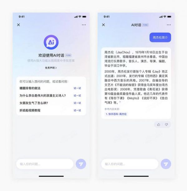 据悉,“快手AI对话”依托于快手站内多元和有生命力的社区内容生态,通过互动对话的形式,可以帮助用户快速查找短视频、达人、百科等内容,体验全新的信息获取形态。