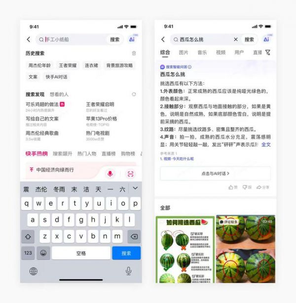 快手方面介绍,和传统大模型相比,快手AI对话是对于搜索新场景的探索。一方面将快手站内大量的内容资源作为索引,解决大语言模型AI幻觉的问题,提升回答准确性;另一方面也用更加有效地资源组织形式满足用户多元化需求,不仅覆盖生活常识、服务查询等内容,用户还可以进行追问,在个性化的场景中寻找到更适合自己的搜索结果。