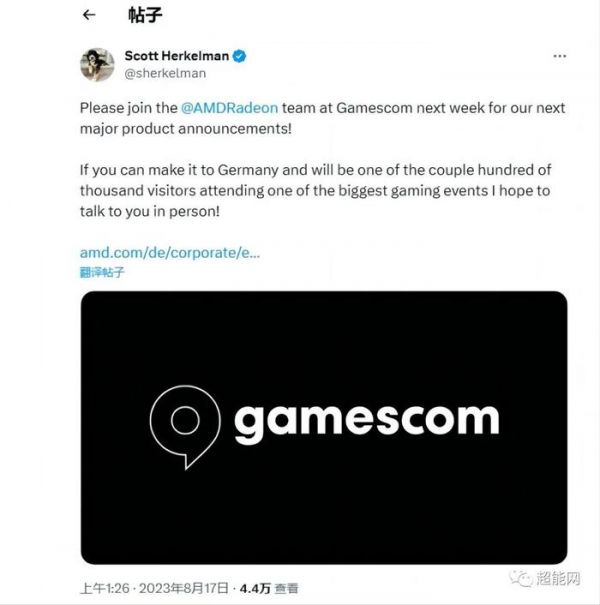 今日,AMD的高级副总裁兼图形业务部总经理Scott Herkelman在社交媒体上发文表示:AMD将在2023年的科隆国际游戏展上举办一场大型活动,届时他们将发布下一款重要产品。结合此前的消息来看,“重要产品”很有可能就是RX 7800 XT和RX 7700 XT。