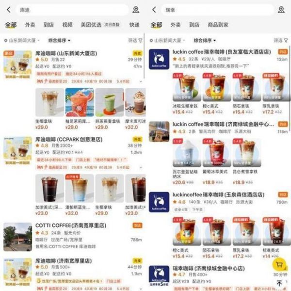 面对瑞幸,库迪毫不客气,称得上是“贴身肉搏”。首先在选址上,瑞幸和库迪几乎没有区隔,库迪甚至打出“瑞幸创始人请你喝咖啡”的噱头,堂而皇之的蹭流量。
