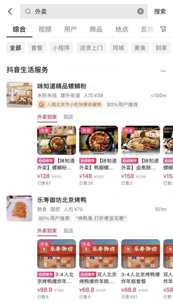 抖音近期开始内测独立的外卖入口,位于抖音APP首页的同城标签页中,汇集了不同商家的外卖套餐。微信门店快送在进入12个一线城市后,计划下个月在更多城市上线。