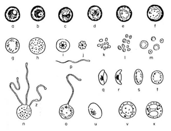 图1. 阿方斯·拉韦朗绘制的疟原虫[3]。图片来源:参考文献[3]