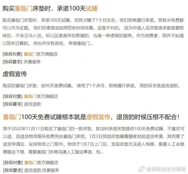 事实上,也有不少消费者反应,喜临门在虚假宣传方面根本就是“惯犯”,网络上有关喜临门的吐槽贴层出不穷。