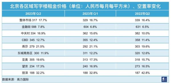 根据高力国际报告,2023年,北京办公楼市场第二季度整体净吸纳量(新增租户面积减去流失租户面积)为-5.3万平方米,租户在不断外流。