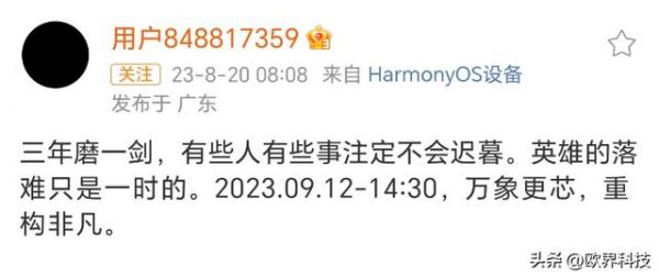 今日华为系爆料博主@用户848817359带来了华为Mate 60系列的最新消息。博主表示:三年磨一剑,有些人有些事注定不会迟暮。英雄的困难只是一时的。2023.09.12 14:30,万象更芯,重构非凡。