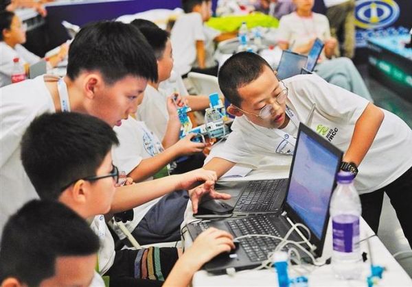 8月17日,小选手在世界机器人大赛现场测试设备。本届大会同期开启2023世界机器人大赛锦标赛(北京),各赛项均有创新,被誉为机器人界的“奥林匹克”。