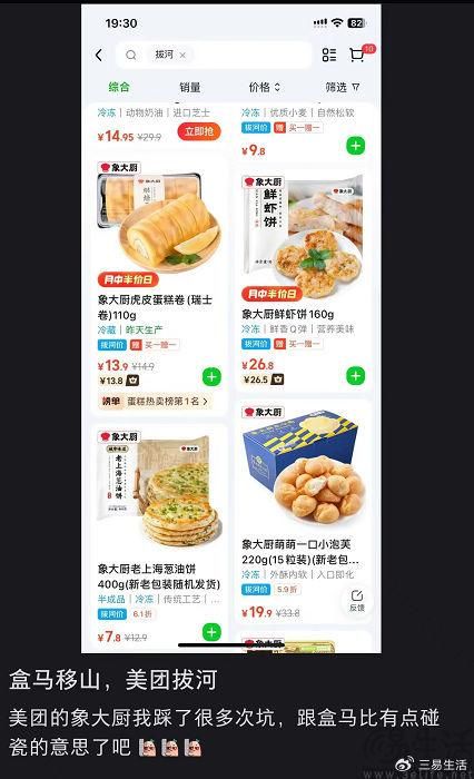 就在外界围观盒马与山姆这场大战、并呼朋唤友“薅羊毛”之时,一旁的美团买菜也加入战局,并祭出了“拔河价”。据了解,美团买菜中带有“拔河价”标签的商品均来自“象大厨”,即美团旗下“小象生鲜”的自有品牌。正如同盒马的“移山价”一般,虽然并未言明,但“拔河价”指向的是谁显然已经不难猜测,而这也无疑让局面变得更加微妙起来