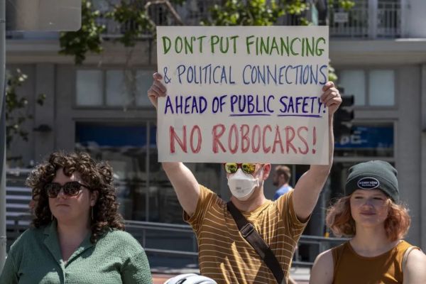 然而,并不是所有人都为Cruise和Waymo在旧金山正式运营无人出租车叫好。就在CPUC进行听证投票的同时,旧金山会场大厅外有数百人在举牌进行抗议。其中既有来自旧金山的政府代表,也有普通民众以及工会组织,他们不愿意看到旧金山的道路成为无人驾驶行业的测试场地。