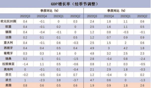 欧元区GDP二季度经季节调整后同比增长0.6%,环比增长0.3%。欧盟统计局8月17日发布的数据显示,与上一季度相比,2023年第二季度欧盟企业申请破产数量增加8.4%,为2015年有可比数据以来的最高水平。