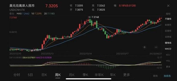特别是最近一段时间,人民币向下的速度在加快。最新数据显示,美元兑离岸人民币为7.3205。