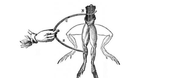 电池的故事还得从一只倒霉的青蛙说起:1786年,意大利医生伽伐尼捕获了一只离家出走的旅行青蛙,对其进行解剖。他发现当手术刀的刀尖碰到蛙腿上外露的神经时,蛙腿会剧烈痉挛,由此发现了生物电。