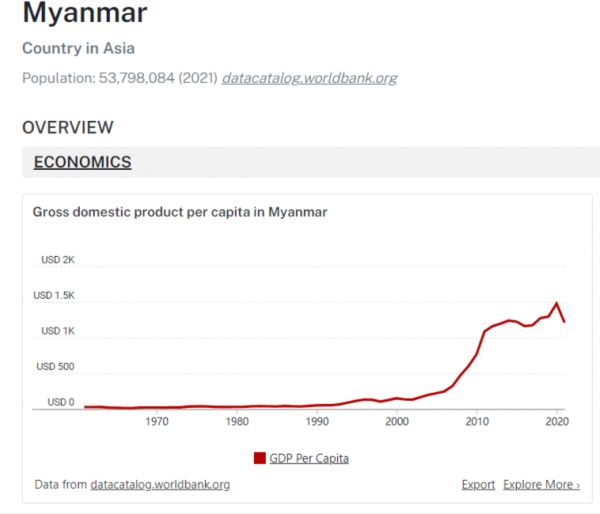 根据世界银行发布的2023~2024财年收入标准,缅甸被列入中低收入国家名单。缅甸人均国民总收入为1210美元,与越南的人均收入差距高达2798美元。
