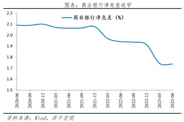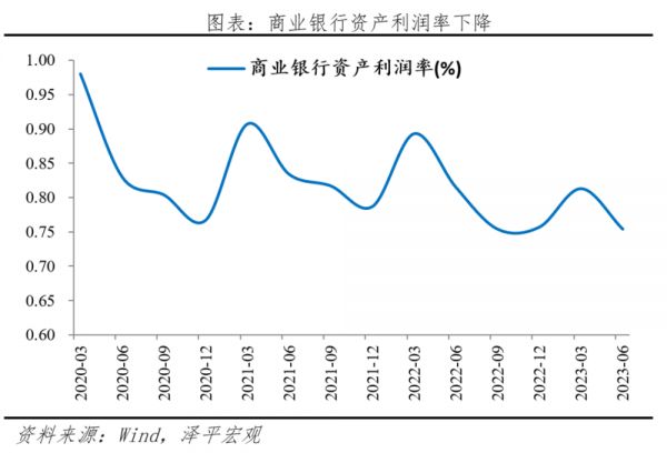 商业银行净息差收窄,稳定商业银行利润必要性提高。我国商业银行净息差和资产利润率持续下降,截至2023年第二季度,商业银行净息差仅1.74%,连续两个月低于警戒线。二季度货币政策执行报告开设专栏强调“商业银行维持稳健经营、防范金融风险需要保持合理利润和净息差水平”。本次非对称式降息,降低1年期LPR,而5年期LPR维持不变,有利于缓解商业银行负债端压力,维持商业银行平稳运营,增强商业银行支持实体经济的可持续性,防范金融风险。