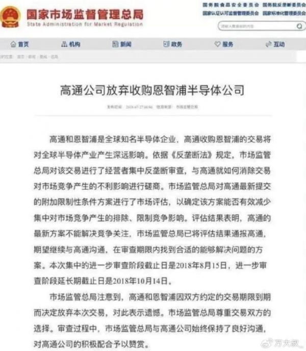 另外,这也是有先例的。例如,2018年高通收购恩智浦和2021年应用材料收购日本国际电气的交易,也都因为未能获得我国的同意而取消。
