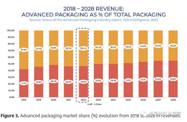 尽管2022年半导体行业经历了经济放缓,整体下滑了6%,但先进封装表现出了韧性,实现了443亿美元的骄人收入。这证明了先进封装的持续需求和重要性,与当前的宏观经济趋势无关。