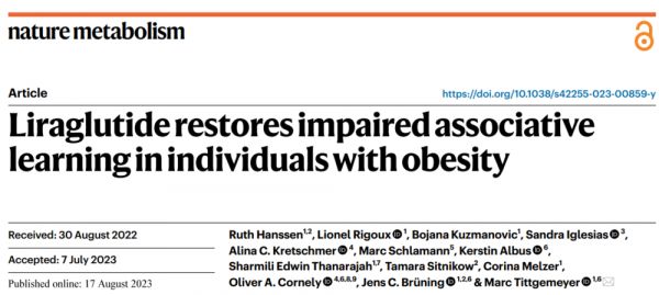 [1] Liraglutide restores impaired associative learning in people with obesity, Nature Metabolism (2023). DOI: 10.1038/s42255-023-00859-y