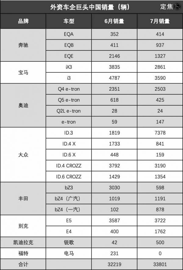 盘点车企巨头在中国市场的表现,你会发现他们的电动车,无论是声量还是销量,都已不复往日荣光。下图是部分车企巨头近两个月在中国市场的新能源销量: