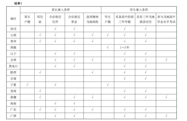 为防止学生“空降”考试,大部分省份要求异地高考的学生具有高中三年学籍及三年当地就读经历。