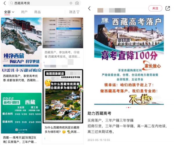 小红书上有关“西藏高考房”的广告帖/图源:小红书截图