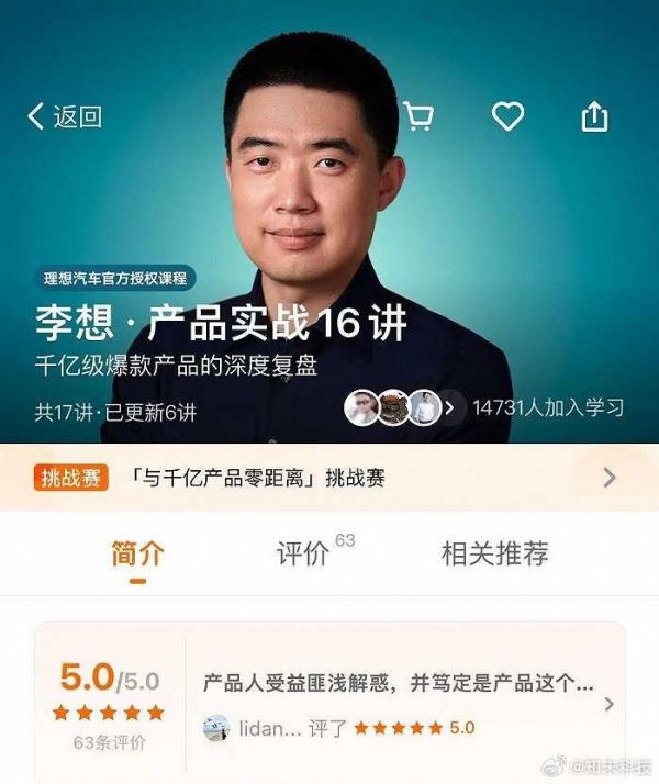 在业内人士看来,李想推出此门课程意不在赚取课程费,而是通过课程教导影响精英群体认知,形成对理想汽车价值观的外部共识。在课程的评论区,已经有不少对理想汽车和李想本人的支持言论。