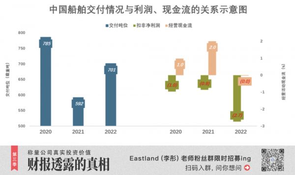 2020年交付785万吨,扣非净亏损9.6亿、经营活动现金净流入9.7亿;2021年仅交付592万吨,扣非净亏损降至8.7亿、经营活动现金净流入增至20亿;2022年交付701万吨,扣非净亏损暴涨至27.5亿,经营流动现金流由正转负。