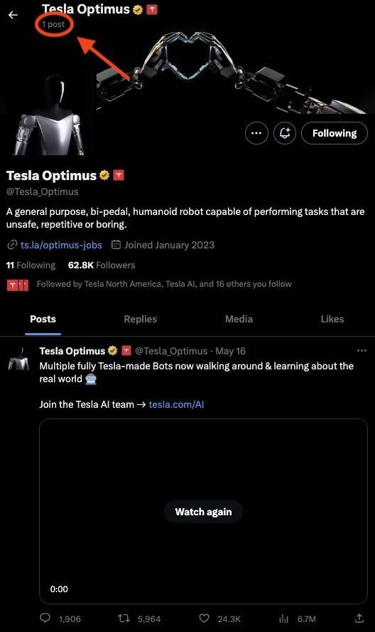 而且 Tesla Optimus 账号自从 1 月份创建以来只发过一条推文,也就是说特斯拉每月为这个账户支付 50 美元,但该账户大部分时间都没有用。