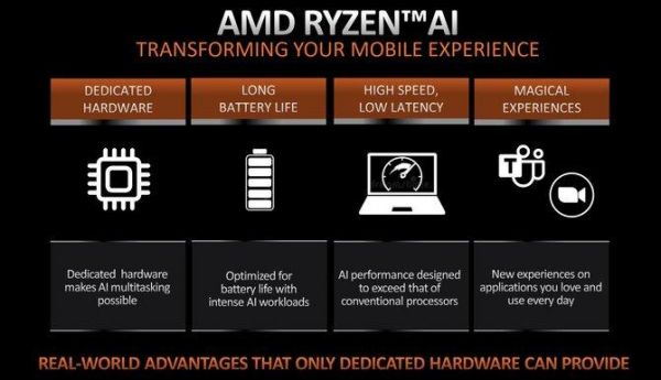 将人工智能工作负载从云端转移到本地端硬件,一个很大的优势就是可以减少硬件、网络带来的延迟,多任务处理的速度更快,此外就是可以将敏感数据与云端进行隔离,避免个人隐私的泄露。软件层面,AMD官方也表示,Ryzen AI软件平台将于今年晚些时候全面推出,它将为开发人员提供将AI添加到现有应用程序所需的工具,并创建全新的程序,以新的、令人兴奋的方式利用这一新兴领域。