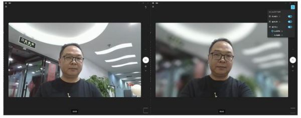 我们只需要在Windows 11中搜索并打开相机应用,在视频选项上开启自动取景、眼神交流、背景效果。可以看到下面的两张图,左侧的图是一个没有效果加持的,右侧的开启效果后,背景以及模糊处理,眼睛也从略微的下看,变成了注视,这样的视频效果就自然很多。