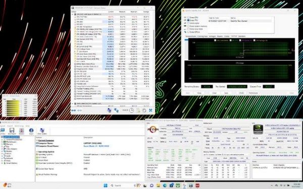 除了更低延时、更快捷的视频应用,锐龙9 7940HS处理器还有着更好的能效比,在雷蛇Blade 14 2023笔记本上,雷云控制中心设置为增强、最大风扇转速模式,使用AIDA64的FPU模式对CPU进行单拷,在连续15分钟的运行中,功耗可以稳定在80W,温度96°C。相比较13代英特尔酷睿H/HX系列处理器,有着更低的功耗表现。与此同时,得益于锐龙9 7940HS处理器的全大核设计,以及集成当前最强RDNA 3架构、12个计算单元的Radeon 780M显卡,使得其在多任务处理、图形视频等处理方面,有着明显的优势。