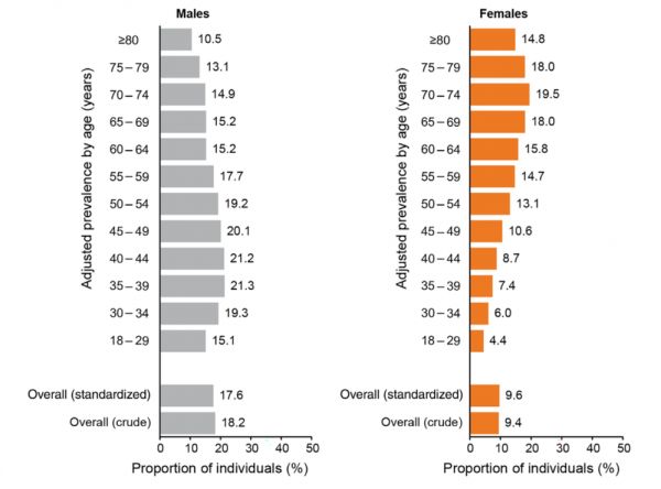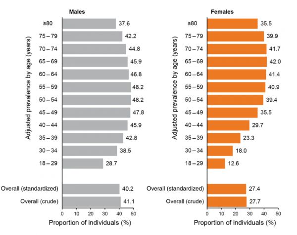 纵轴为年龄段,横轴为肥胖人群比例丨参考文献1