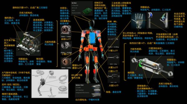人形机器人是一个大赛道,能带动众多细分赛道。以特斯拉机器人Optimus为代表的人形机器人硬件全景图。图片来源:中信证券