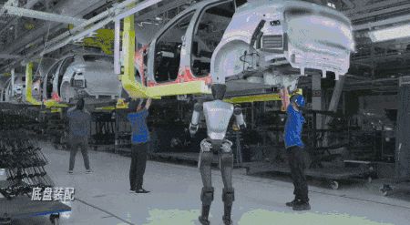 智元的人形机器人应用在汽车工厂