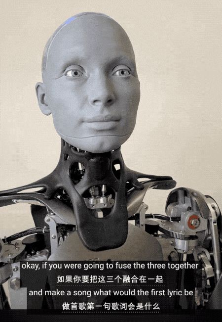 例如英国Engineered Arts 公司的人形机器人Ameca,输入了大量真人表情数据,通过立体3D打印机制作出精确的模具,实现了生动的面部表情和肢体语言。