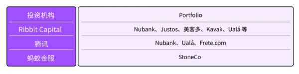 RockFlow 统计发现,Ribbit Capital 在拉美市场公开的 portfolio 包括:巴西知名金融科技公司 Nubank、巴西保险科技公司 Justos、拉美头部电商平台美客多、拉美二手车平台 Kavak、阿根廷金融科技公司 Ualá 等。