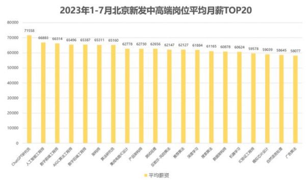 从平均月薪来看,2022年北京市中高端人才平均月薪为55684元,同比幅达到5.71%,但2023年1-7月,北京中高端人才的薪资下滑至55639元,小幅降低0.08%。