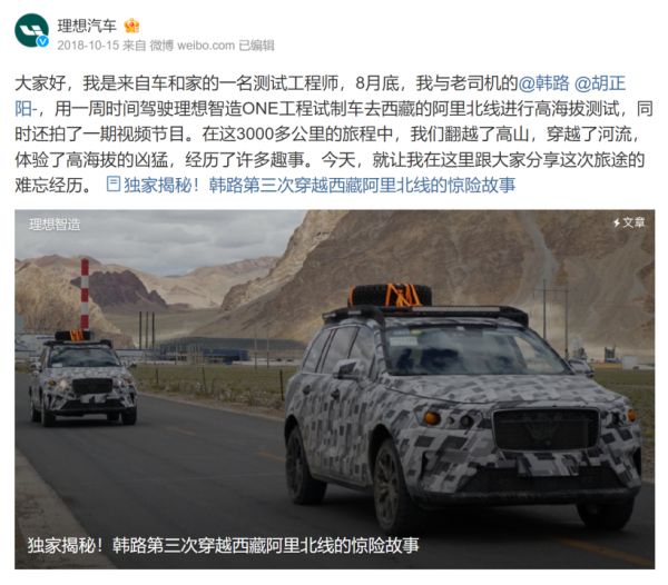 最新发布的极石01被大家戏称“越野版理想”,实际上在理想ONE还叫“理想智造”的时候,某些头部KOL就在微博直播伪装工程测试车在西藏的高海拔测试。