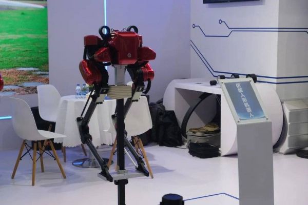 中国兵器装备集团自动化研究所有限公司展出了“鸵鸟腿”的机器人。这种腿部设计最早源自 Agility Robotics,中国兵器装备集团自动化研究所有限公司是国内首家做出相关技术的公司。据工作人员介绍,鸵鸟腿的设计可以使整个机器人重心比较高。传统的双足机器人腿部质量更大,这样腿部前摆时所需要的能量消耗就更高,而鸵鸟腿的能量消耗更低。
