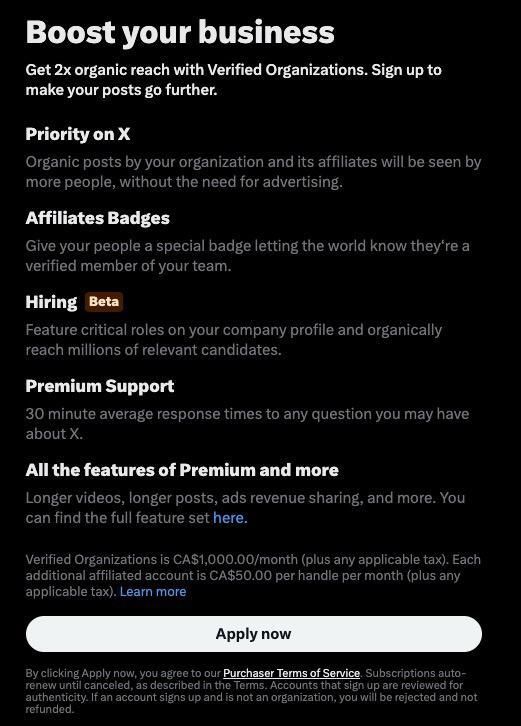 这个服务非常昂贵,X 主账号每月收取 1000 美元的费用,然后每个 " 附属账号 " 还要收取 50 美元的费用。而特斯拉就正在为这项服务付费,Electrek 发现了 13 个与特斯拉经过验证的组织帐户相关的帐户。这意味着特斯拉每月要支付 1650 美元,也就是每年大约 2 万美元。