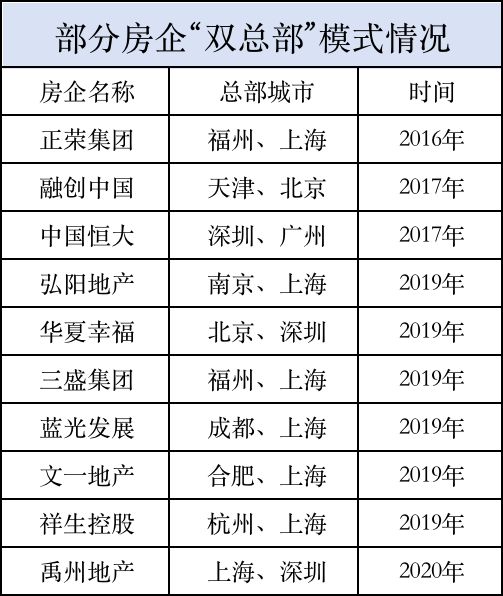 那几年行业发展迅猛,很多有野心的开发商都选择了全国化扩张,这种双总部模式也一发不可收拾,盘点一下,基本都在2016~2020年间。