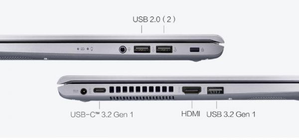 接口上,有两个USB-A,一个USB-C,还有电源接口,HDMI,十分丰富。具有41Wh电池,45W AC适配器,重量1.74,预装Windows 11,提供1年质保。