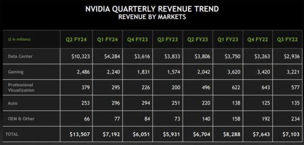 英伟达四项业务营收情况