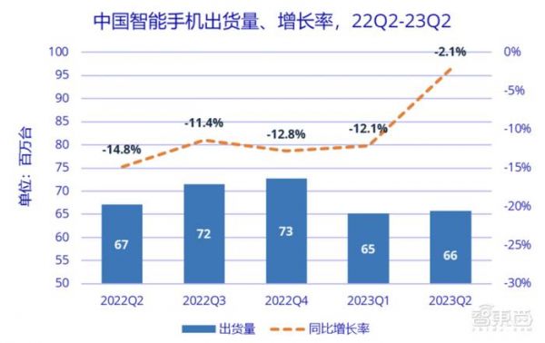 Canalys最新发布的报告显示,2023年第二季度,全球智能手机市场衰退有所放缓。与此同时,Canalys和另一家市场研究机构IDC的数据显示,国内智能手机市场第二季度出货量也在收窄。