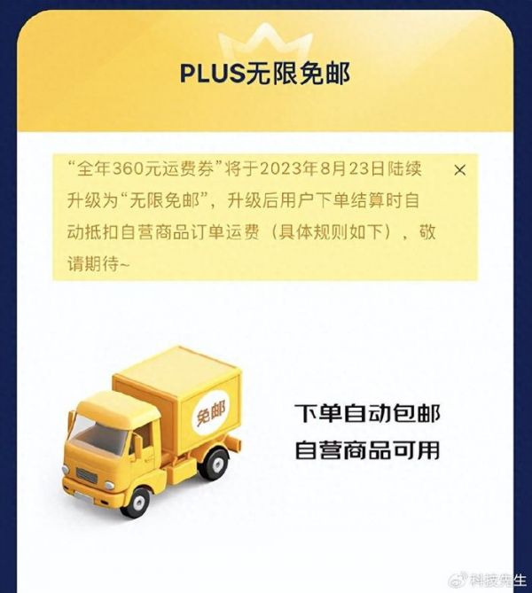 科技先生8 月 23 日讯,昨天下午就一直有“传言”京东Plus权益将有重大调整,原来的99 元包邮将升级到无限免邮,听上去很不错啊!