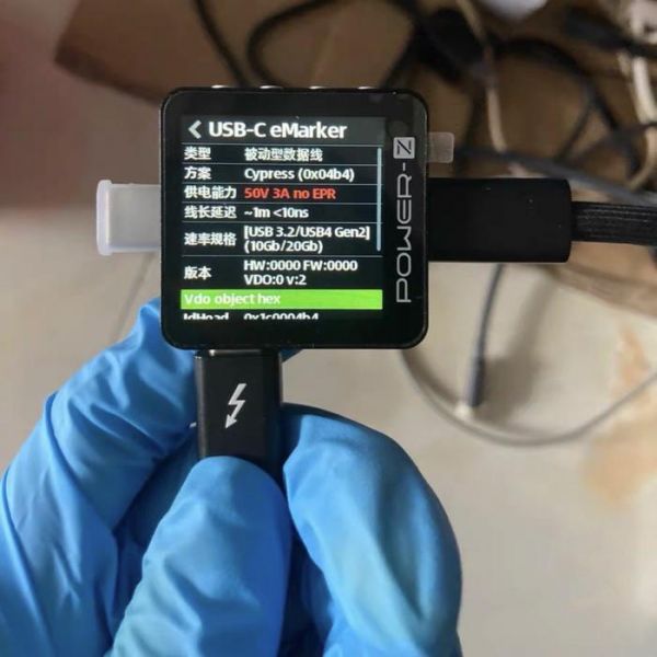 爆料称该线缆采用 USB 4 Gen 2 协议,支持外接 4K@60Hz 显示器,供电功率为 150W。根据曝光的测试截图,这款工程显然在 USB 3.2 下最高传输速率为 10Gbps;在 USB 4 Gen 2 下最高可以达到 20Gbps。