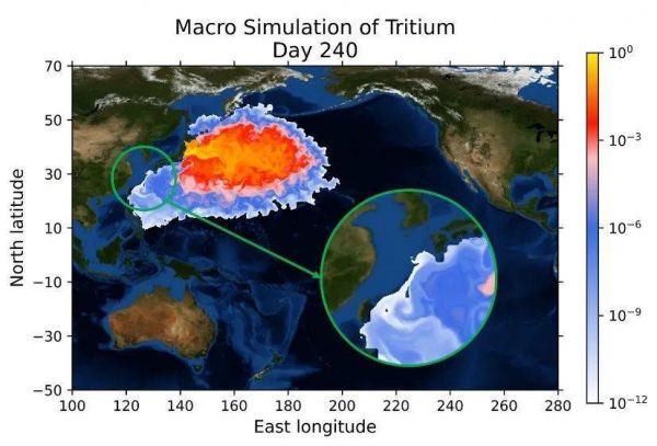 根据日本的排放计划,1单位氚污染物的浓度大约对应0.29Bq/m3,相比于氚在海洋中的背景浓度来说不算很大。尽管如此,这项研究对于污染物长期扩散的预测、核污水排放计划的合理应对以及后续放射性物质浓度的监测仍具有重要意义。
