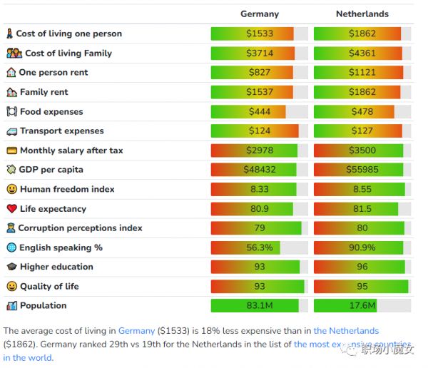 最后附上德国与荷兰生活成本对比,当然德国那么大,选择性那么多,不能一概而论。仅供参考吧。