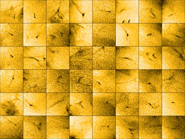 这组图像显示了大量微小的物质喷流从太阳的外层大气中逸出。每个喷流仅持续20到100秒,速度约为100千米/秒。这些事件可能是人们长期寻找的“太阳风”的起源。(图/ESA & NASA/Solar Orbiter/EUI Team/Lakshmi Pradeep Chitta)