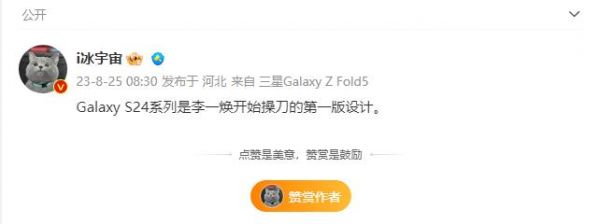 @i 冰宇宙表示三星 Galaxy S24 是李一焕操刀的第一版设计。IT之家此前报道,三星于去年 12 月聘请了梅赛德斯-奔驰中国区前首席设计官李一焕(Hubert H. Lee),并任命为执行副总裁兼 MX(移动体验)设计团队负责人。