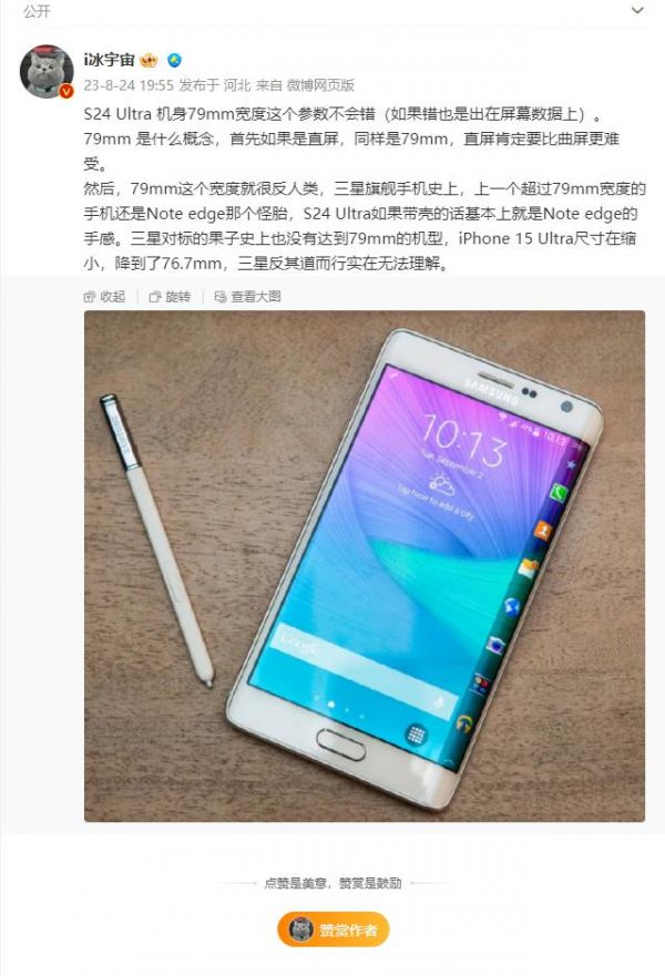 S24 Ultra 机身 79mm 宽度这个参数不会错(如果错也是出在屏幕数据上)。
